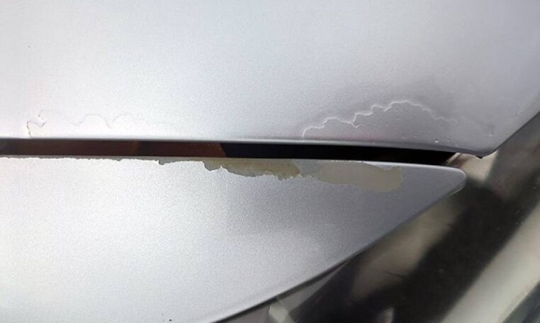 • Hood has paint clear chip/delamination.
